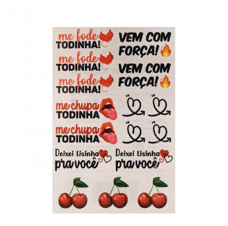 FOTO 03: VEM COM FORÇA Tatuagem Temporária 10 x 15cm , a tatuagem removível da é ideal para esquentar seus momentos de prazer. Com desenhos variados, ela é fácil de aplicar e remover, proporcionando uma experiência sensual e divertida.