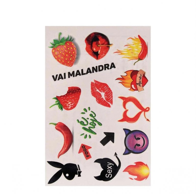 Modo de Uso: Destaque o desenho desejado. Remova a proteção de plástico. Aplique a tatuagem na pele seca e limpa. Umedeça o verso com água. Retire após 30 segundos.