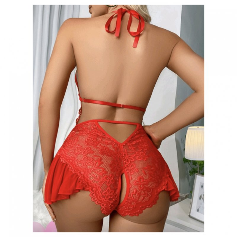 BODY RENDA SENSUAL COM ABERTURA E SAIA EM TULE